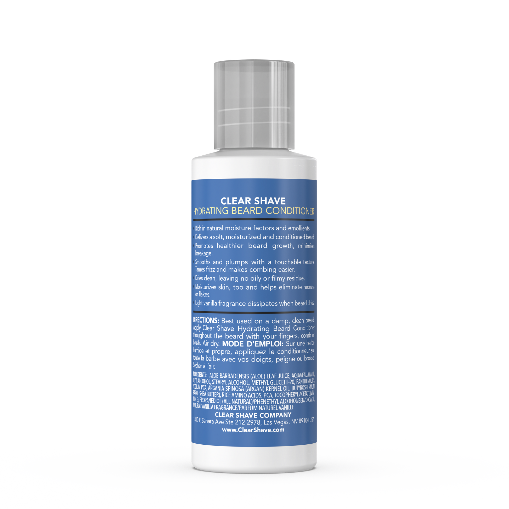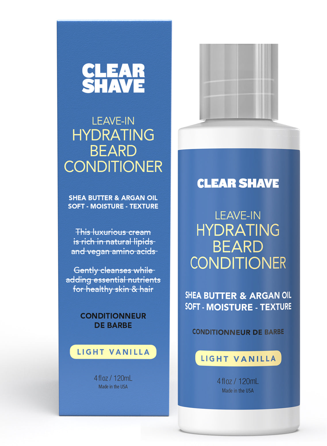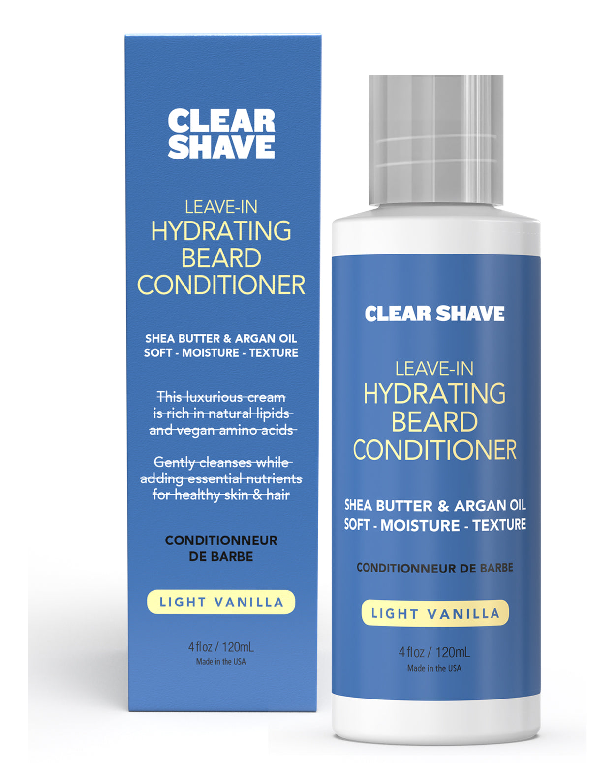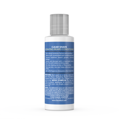 Leave-in Hydrating Beard Conditioner moisturizes and softens while protecting from breakage and tangles. Infused with 11 nutrients including Shea Butter, Argan Oil, Panthenol B5 and Vegan Proteins to keep your beard strong and vibrant without stiffness or stickiness. Promotes healthy beard growth. Non-greasy, it's made without mineral oil, petroleum, glycerin or glycols. Clear Shave is salon-quality nourishment that leaves your beard well-conditioned, healthy, texturized and touchable.